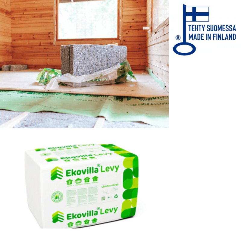- Ekovilla on hiilineutraali eriste, joka valmistetaan uusiutuvista luonnonvaroista. Se varastoi hiiltä koko käyttöikänsä ajan.