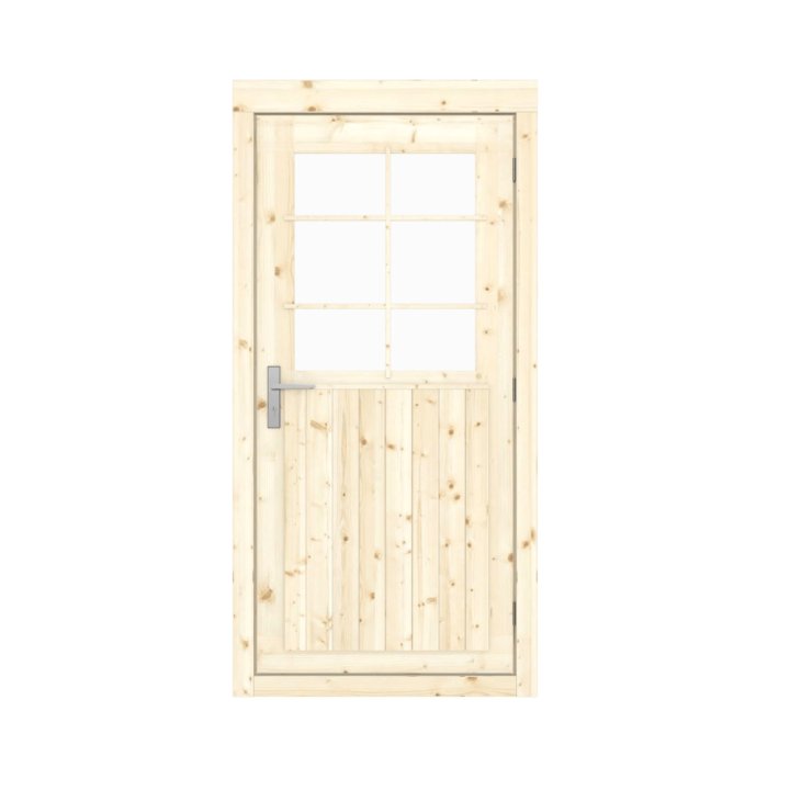 Puuvalmis ja käytännöllinen Lokki Kevyt-ovi huusseihin, mökkeihin tai vierasmajoihin. Soveltuu myös sisä-oveksi tai saunan oveksi.