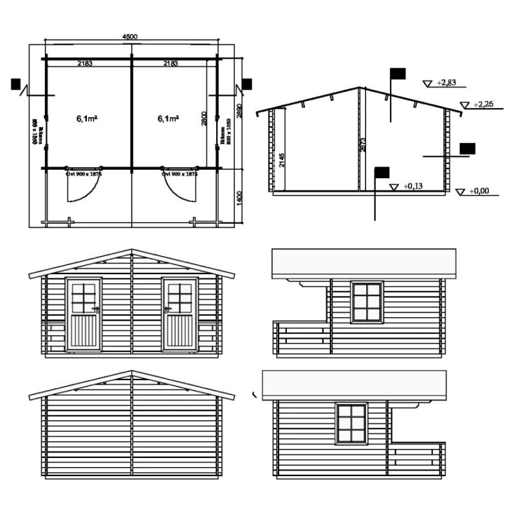 Sisältää kaikki tarpeelliset osat ja tarvikkeet kotimaisen pihamökin pystyttämiseksi.