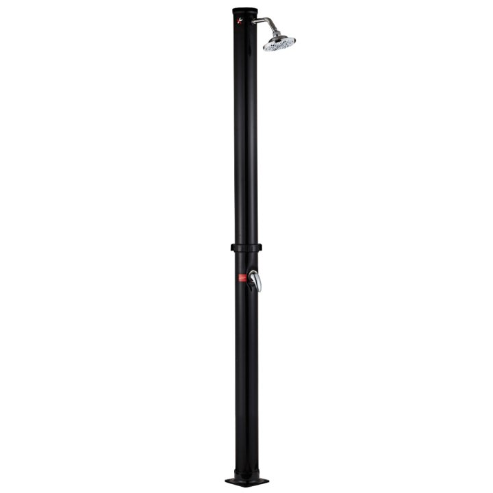 Suuri aurinkosuihku, joka on helppo asentaa ja käyttää. Suihku kytketään puutarhaletkuun ja vesi lämpeää auringon avulla.