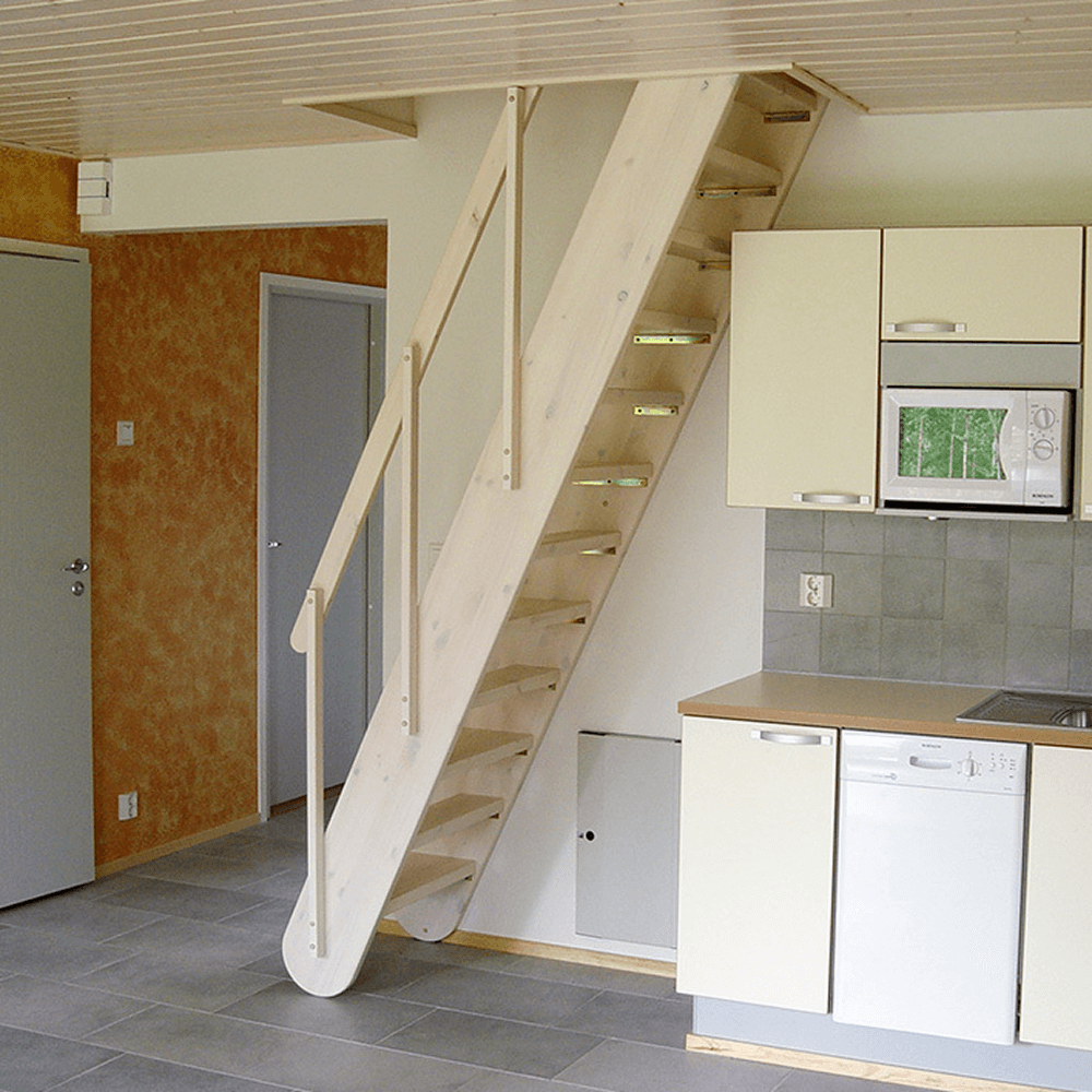 Sisäportaat ja sisäportaiden kaiteet kaksikerroksiseen kotiin tai mökille löydät Lokkituotteen verkkokaupasta kätevästi ja luotettavasti. Valikoimamme portaat sopivat sisälle ja erilaisten porrasmallien sekä mittojen avulla saat suunniteltua juuri sinun kotiisi sopivat portaat vastaamaan tarpeitasi ja mieltymyksiäsi. Hankkimalla valmiit portaat mökille tai kotiin säästyt isolta rakennusurakalta, suunnittelulta ja vaikealta asentamiselta. Puiset portaat ovat klassikot ja monien rakastamat niiden tyylikkyyden, kestävyyden, monipuolisen muotoilun sekä luonnollisen ja mukautuvan ulkonäön vuoksi. Ne ovat perinteiset, turvalliset ja kestävät sekä pystyt mukauttaa värin ja mallin omaan kotiisi sopivaksi. Puiset portaat ovat yleensä valmiiksi käsitelty, lakattu tai maalattu. Valitse haluamasi käsittely tilatessasi portaat. Tutustu kattavaan valikoimaamme ja tilaa omasi!