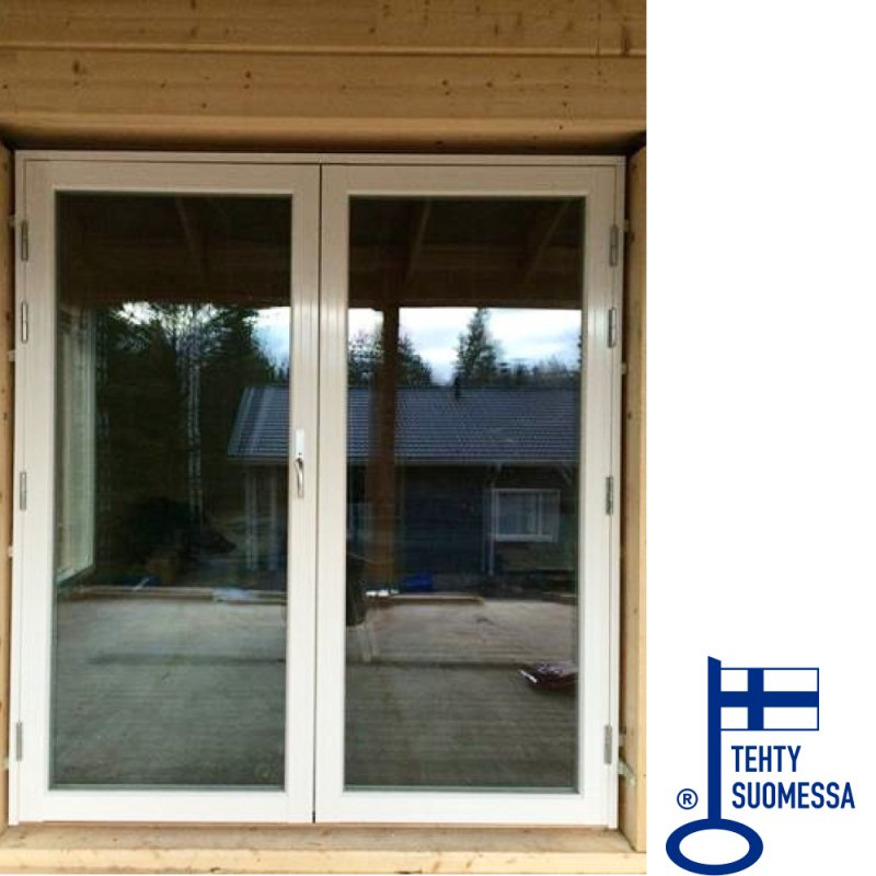 Ulkopuoli alumiiniverhottu, sisäpuoli puuta, kaksinkertainen tiivistys, yksilehtinen, ulospäin avautuva, lämpöeristetty, kovapuukynnys alumiinisella kulutuslistalla, säädettävä vastarauta, säädettävät murtosuojasaranat. Vastahuuullosovessa reunasalvat. Lasi 4mm karkaistua molemmin puolin.